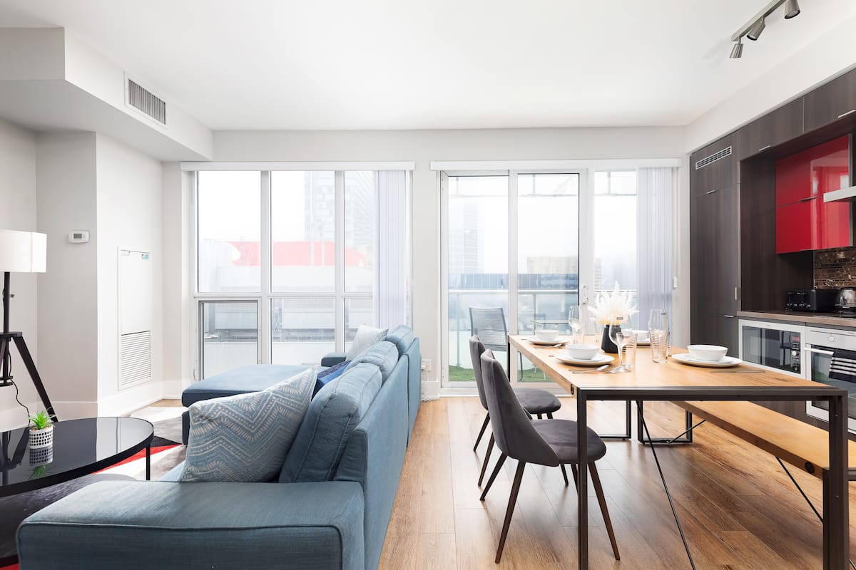 Including an office work space, 43 inch Smart TV for Netflix, High Speed internet with fantastic view of the CN Tower!