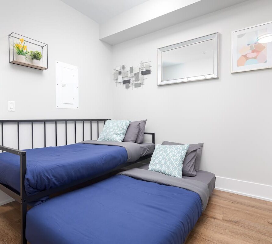 This is a very spacious 1 Bed Room + Den which has 1 Queen Bed and 2 Single Beds via a trundle. Fully loaded kitchen, dining area, work space and a balcony with a truly breath taking view of the CN Tower.